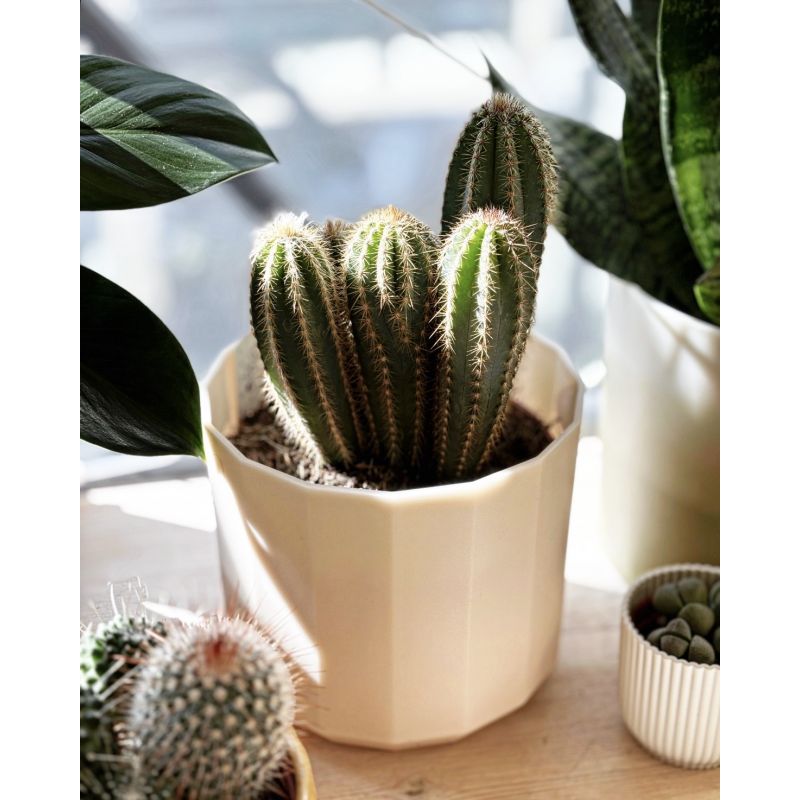 Kaktus o kolumnowym pokroju z drobnymi cieniami.